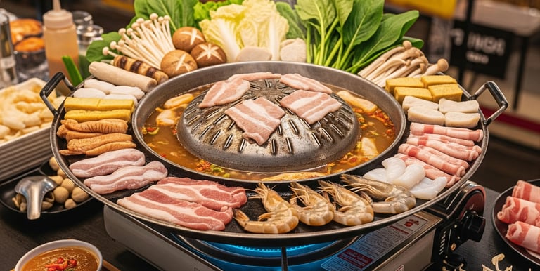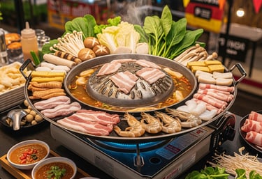 Savor authentic Thai mookata and lok lok dishes in a lively atmosphere with friends.